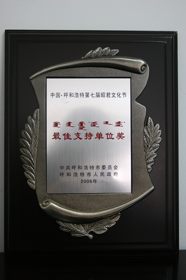 中國·呼和浩特第七屆昭君文化節(jié)最佳支持單位獎