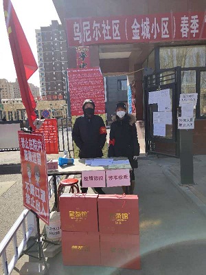 財(cái)務(wù)部董旭、張婷婷、閆姝敏、杜思雨、趙曉梅等同志在保障本職工作的基礎(chǔ)上主動(dòng)請(qǐng)纓積極支援到各自所在的社區(qū)工作當(dāng)中,他們其中有共產(chǎn)黨員也有普通群眾,但在這場(chǎng)沒(méi)有硝煙的疫情防控狙擊戰(zhàn)中,他們擁有一個(gè)統(tǒng)一的身份可愛(ài)的志愿者,天氣雖然寒冷,他們卻斗志滿滿的穿梭在社區(qū)的各個(gè)角落,協(xié)助社區(qū)工作人員開(kāi)展測(cè)溫、登記人員信息、宣傳防護(hù)知識(shí)等工作,其中董旭同志是一名共產(chǎn)黨員,但她也是兩個(gè)孩子的媽媽?zhuān)a(chǎn)假剛剛結(jié)束就積極投身到疫情防控工作當(dāng)中,充分展現(xiàn)了共產(chǎn)黨員的本色,發(fā)揮了先鋒模范帶頭作用。面對(duì)疫情他們不畏懼退縮,堅(jiān)守在防疫一線,用細(xì)心換來(lái)安心,用愛(ài)心凝聚力量,用信心決戰(zhàn)疫情,為防控疫情工作默默的貢獻(xiàn)著自己的力量。