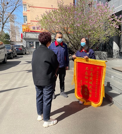近日,賽罕區(qū)人民路街道辦事處健康社區(qū)黨支部書記鄭嬌把一面印有"眾志成城戰(zhàn)疫情 不忘初心擔(dān)使命"的錦旗送到富泰熱力公司事務(wù)管理中心,對(duì)疫情防控期間協(xié)助配合他們工作,并為他們送去所需物資的事跡表達(dá)謝意。