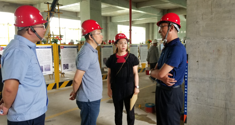 在接下來的現(xiàn)場觀摩環(huán)節(jié),重點對項目標(biāo)準(zhǔn)化、綠色建設(shè)、數(shù)字建造等施工理念的應(yīng)用和先進工藝進行展示。與會人員參觀了工程實體質(zhì)量精益管控、BIM技術(shù)及動畫演示、噪音(粉塵)監(jiān)測控制聯(lián)動系統(tǒng)等創(chuàng)新技術(shù)應(yīng)用,聽取了興泰公司技術(shù)負責(zé)人現(xiàn)場講解和經(jīng)驗介紹。