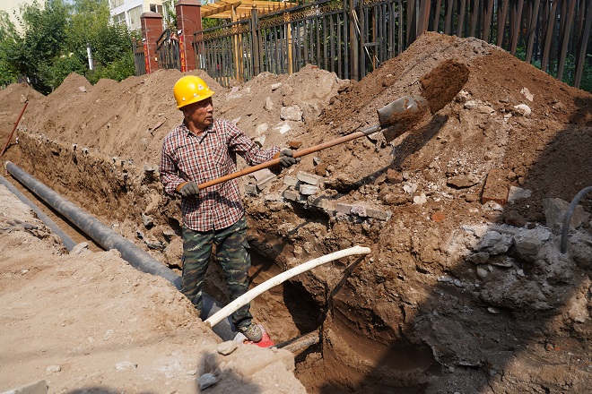 白云偉說(shuō),"這段供熱管線下面還有一段天然氣管線。這段管溝長(zhǎng)度僅55米多,但施工難度較大,機(jī)具僅開(kāi)挖了表層,其余是人工開(kāi)挖,人工開(kāi)挖就進(jìn)行了三天,55米管溝開(kāi)挖、鋪設(shè)管道就用了一周的工期。"