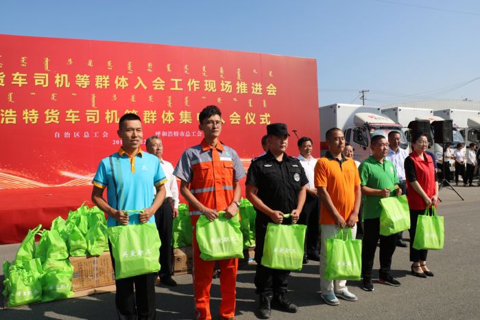 在場(chǎng)的各位領(lǐng)導(dǎo)、貨車司機(jī)等工作人員共同聽(tīng)取了自治區(qū)總工會(huì)關(guān)于貨運(yùn)司機(jī)等群體的入會(huì)報(bào)告后,激情昂揚(yáng)的宣讀了入會(huì)誓詞。自治區(qū)、呼市兩級(jí)總工會(huì)的各位領(lǐng)導(dǎo)向與會(huì)的各單位頒發(fā)了工會(huì)會(huì)員證,并向入會(huì)貨車司機(jī)發(fā)放了慰問(wèn)品。