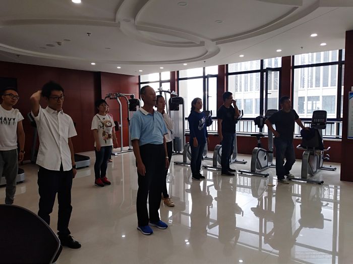 9月6日上午8時(shí)30分,激情洋溢的樂(lè)曲準(zhǔn)時(shí)在城發(fā)集團(tuán)19樓健身房響起,城發(fā)公司的20余名干部職工隨著鏗鏘有力的節(jié)拍,舒展身姿,精神抖擻地跳起了健身操。這是城發(fā)公司工會(huì)為備戰(zhàn)市工間操比賽作的一次賽前集訓(xùn)。