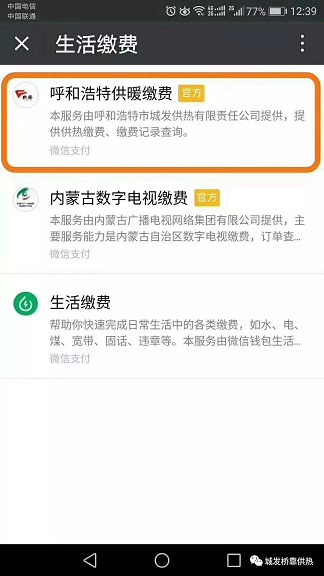 我→錢(qián)包→城市服務(wù)→便民服務(wù)→生活交費(fèi)→呼和浩特城發(fā)供暖交費(fèi)(官網(wǎng))→按提示操作: