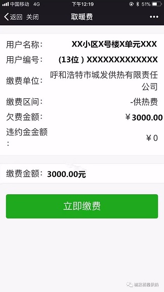 為確保廣大熱用戶(hù)安全交費(fèi),請(qǐng)務(wù)必按照下述正確操作流程進(jìn)行交費(fèi),不要通過(guò)其他公眾號(hào)或個(gè)人生成的二維碼等平臺(tái)進(jìn)入交費(fèi)界面。按照正規(guī)通道進(jìn)入微信平臺(tái)交費(fèi)界面(無(wú)歷年欠費(fèi))操作流程如下: