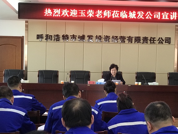 10月18日下午3時(shí),管網(wǎng)公司黨支部聯(lián)合城發(fā)物業(yè)公司黨支部、物流公司黨支部、客運(yùn)公司黨支部、房地產(chǎn)公司黨支部共同邀請榮獲“草原英雄小姐妹”稱號的玉榮老師進(jìn)行宣講。