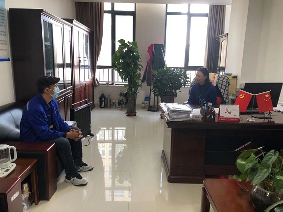 此次活動(dòng)主要訪談接待公司困難職工,了解他們?cè)诠ぷ?、生活及家庭方面存在的困難,征求意見(jiàn)建議,力所能及的幫助解決實(shí)際問(wèn)題。黨支部書(shū)記郭依群還接待了公司新入職的職工,和他們促膝而談,詳細(xì)介紹了公司的發(fā)展情況,鼓勵(lì)他們要發(fā)揚(yáng)青年職工敢于爭(zhēng)先、吃苦耐勞的精神。同時(shí)郭依群同志還同積極入黨的同志進(jìn)行了談心談話,了解其思想動(dòng)態(tài)和工作情況,并要求他們要加強(qiáng)學(xué)習(xí)、提高思想認(rèn)識(shí)和政治覺(jué)悟,時(shí)刻以共產(chǎn)黨員的標(biāo)準(zhǔn)要求自己,爭(zhēng)取早日入黨。