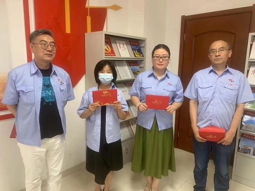 胡日查同志宣讀了集團(tuán)公司黨委審批通過齊樂、張學(xué)敏兩位同志成為中國共產(chǎn)黨預(yù)備黨員,莊永飛、劉濤兩位同志按期轉(zhuǎn)為中國共產(chǎn)黨正式黨員相關(guān)事宜,并向齊樂、張學(xué)敏兩同志表示了衷心祝賀,要求她們在今后的學(xué)習(xí)和工作中不斷用實際行動踐行初心使命,以黨員的標(biāo)準(zhǔn)嚴(yán)格要求自己,時刻保持共產(chǎn)黨員的良好形象、先進(jìn)本色。隨后,胡日查同志帶領(lǐng)齊樂、張學(xué)敏兩位同志和其他全體黨員同志高舉右手,莊嚴(yán)宣誓,再一次重溫入黨誓詞,重憶入黨初心。齊樂、張學(xué)敏兩位同志表示,作為新時代的青年,將牢記黨的宗旨,牢記入黨初心和使命,腳踏實地做好本職工作,以飽滿的熱情和昂揚的斗志投入到工作中去。
